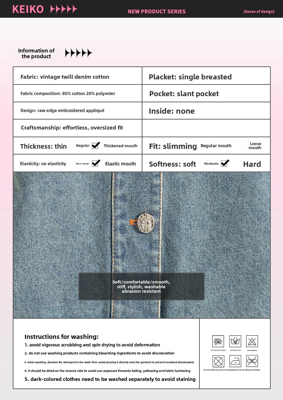 Quality Denim Material: Made from 80% cotton and 20% polyester for durability and comfort.